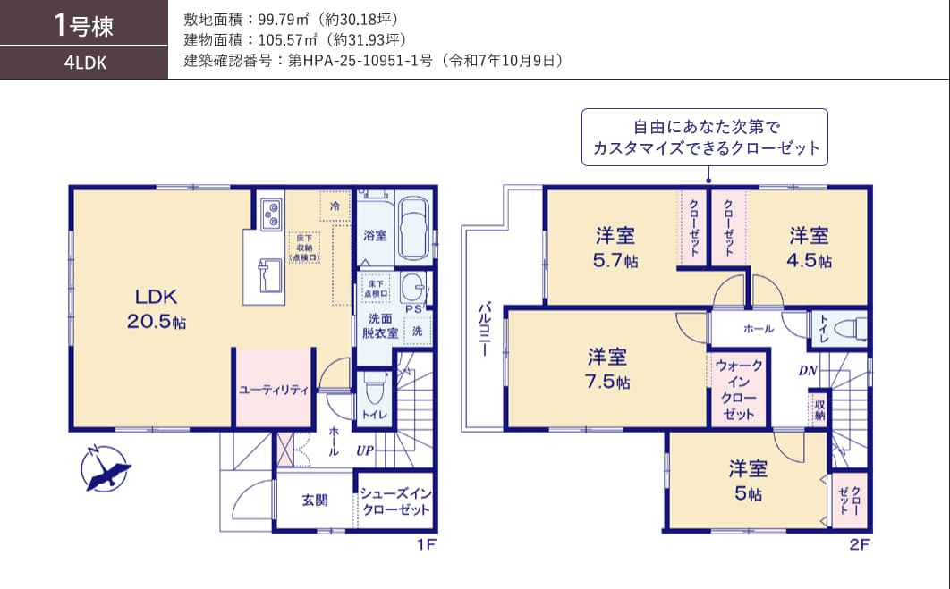 | 駐車場 | 有(2台) | 建築確認番号 | 第HPA-25-10951-1号 |